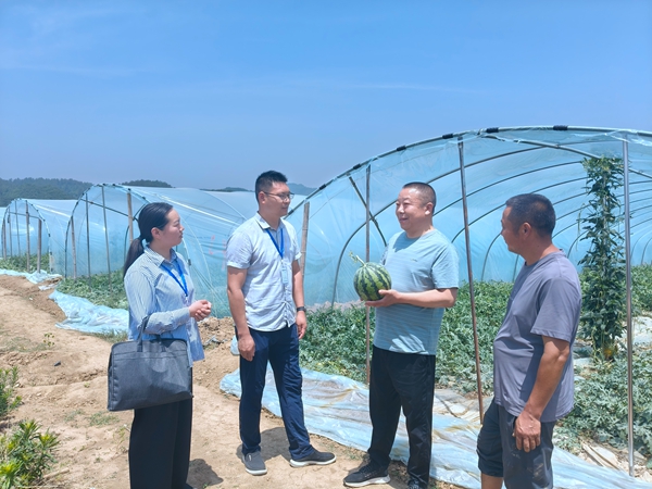 湖北省谷城县纪委监委紧盯乡村振兴产业发展、农村集体“三资”管理、惠农政策落实等强化监督,组织专班深入一线走访,推动解决群众急难愁盼问题。图为该县纪检监察干部在石花镇西瓜产业基地了解有关情况。刘孟卓 摄